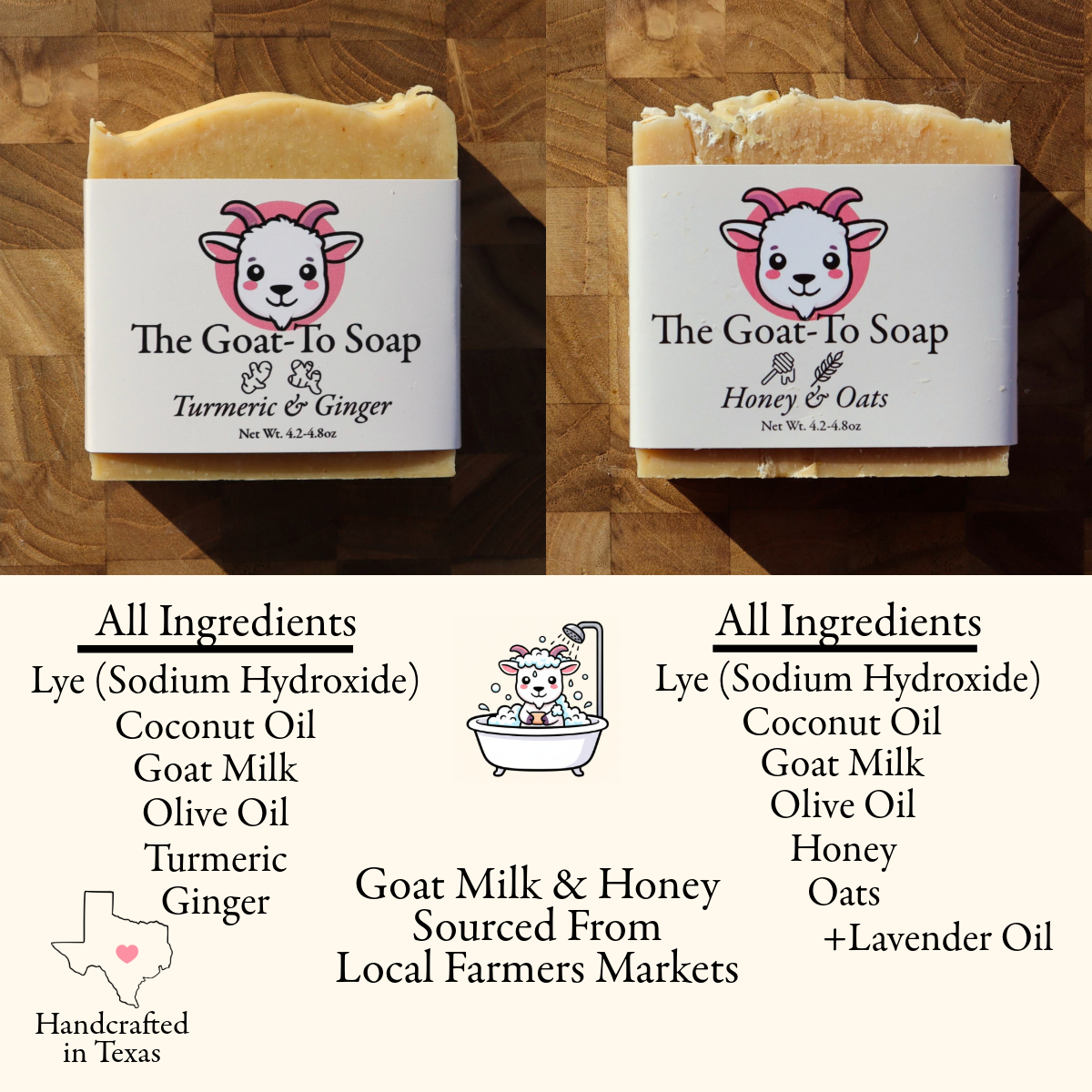 Stock up on your favorites: 2 Honey, Oats & Lavender, 2 Turmeric & Ginger fresh bars & 2 Soap Saver Bags. Creamy goat milk lather, 6 simple ingredients, and an easy routine that lasts.