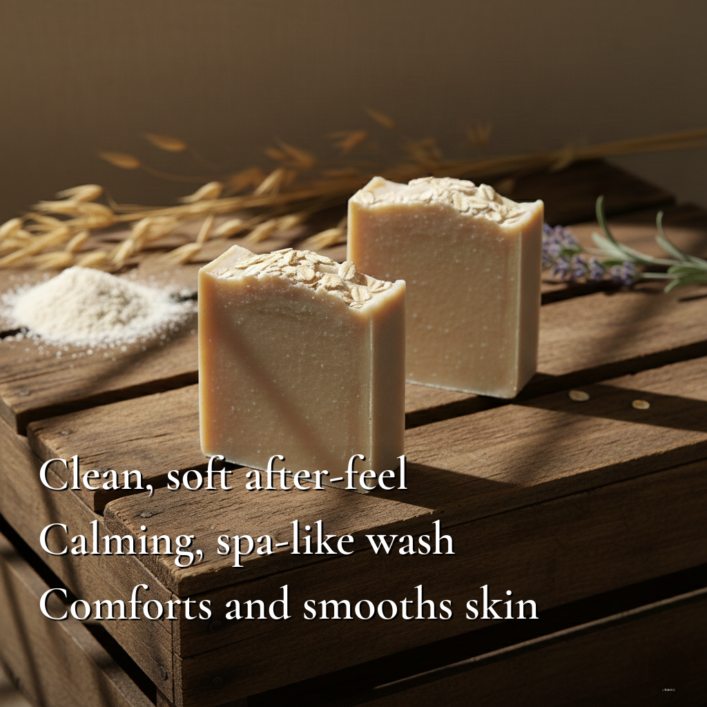 A cozy, gentle bar made with creamy goat milk, honey, and finely milled oats. It lathers rich and leaves skin feeling soft, smooth, and comfortable—never tight.